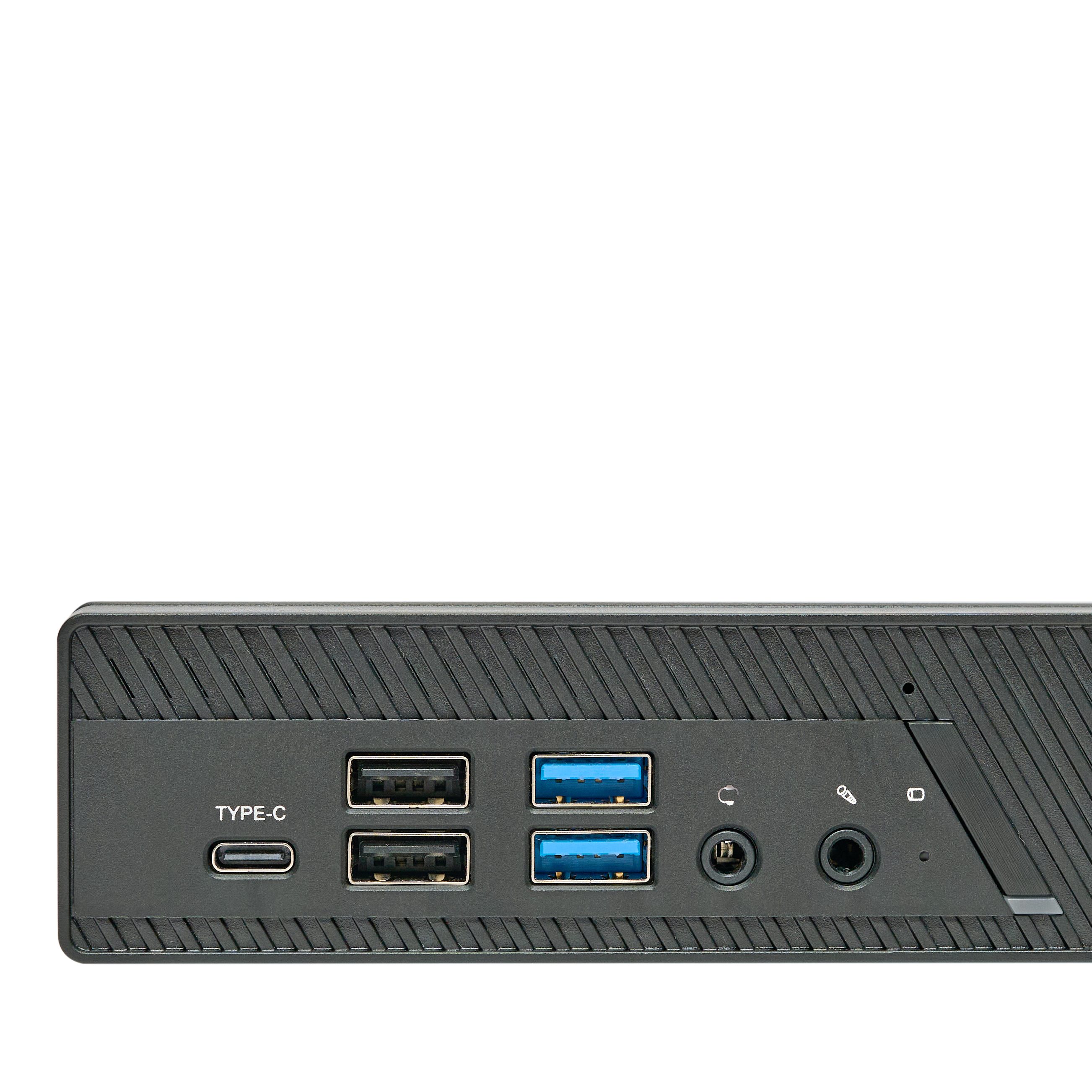 Инновационное решение в корпусе с поддержкой крепления VESA, которое может устанавливаться как вертикально, так и горизонтально — в зависимости от требований рабочего места. Поддерживает подключение до трёх цифровых дисплеев, оснащён двумя сетевыми интерфейсами RJ-45 со скоростью до 2.5 Гбит/с, а также девятью портами USB-A и двумя USB-C на корпусе. Отличный выбор для тонких клиентов, цифровых панелей и решений с ограниченным пространством.